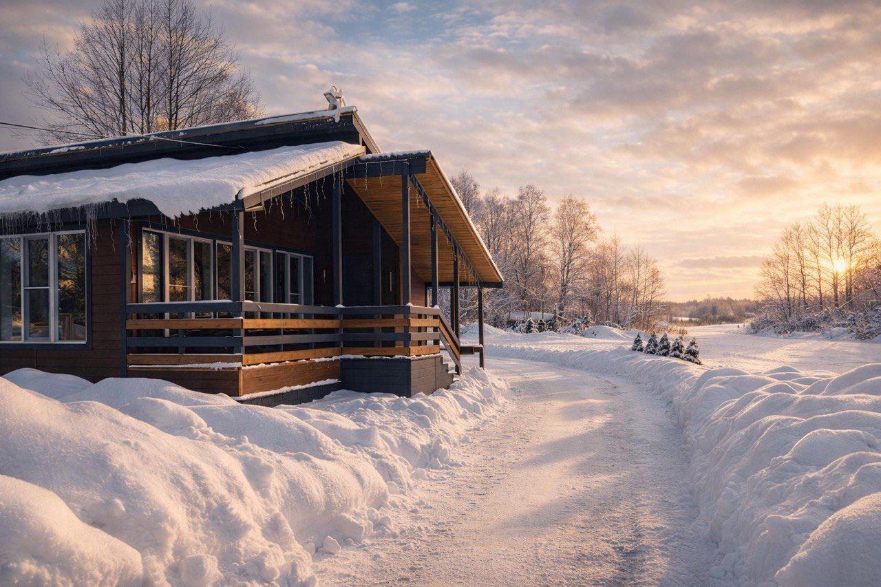 Коттедж ВИП площадью 50 м² с большими панорамными окнами и огромной террасой. Комфортное размещение для 2-3 человек.