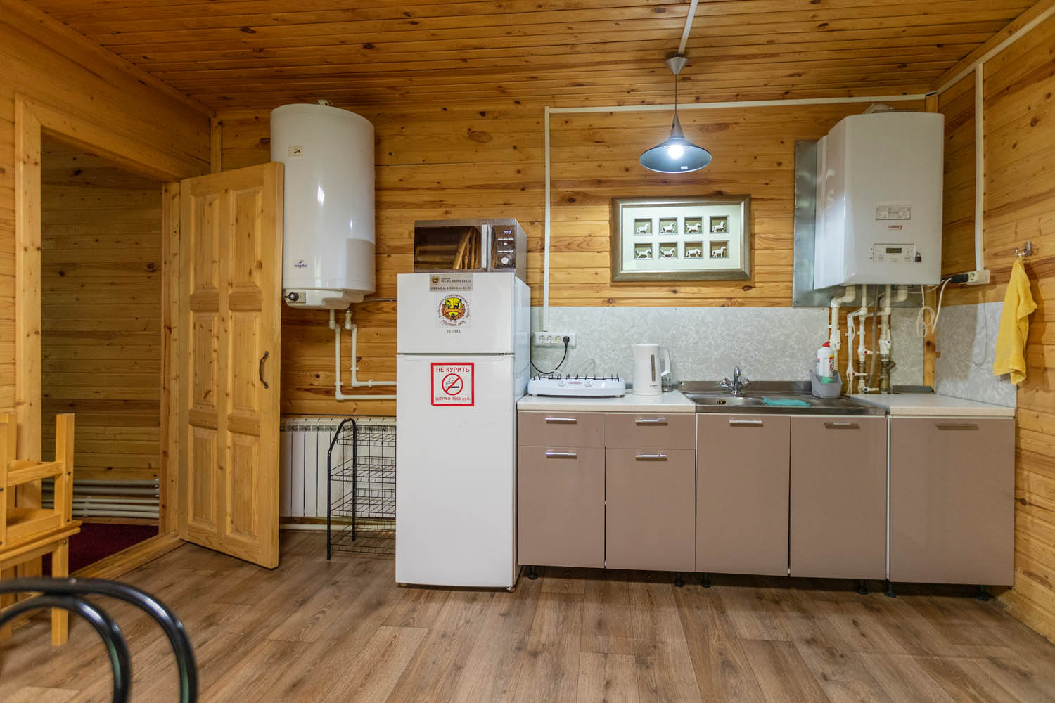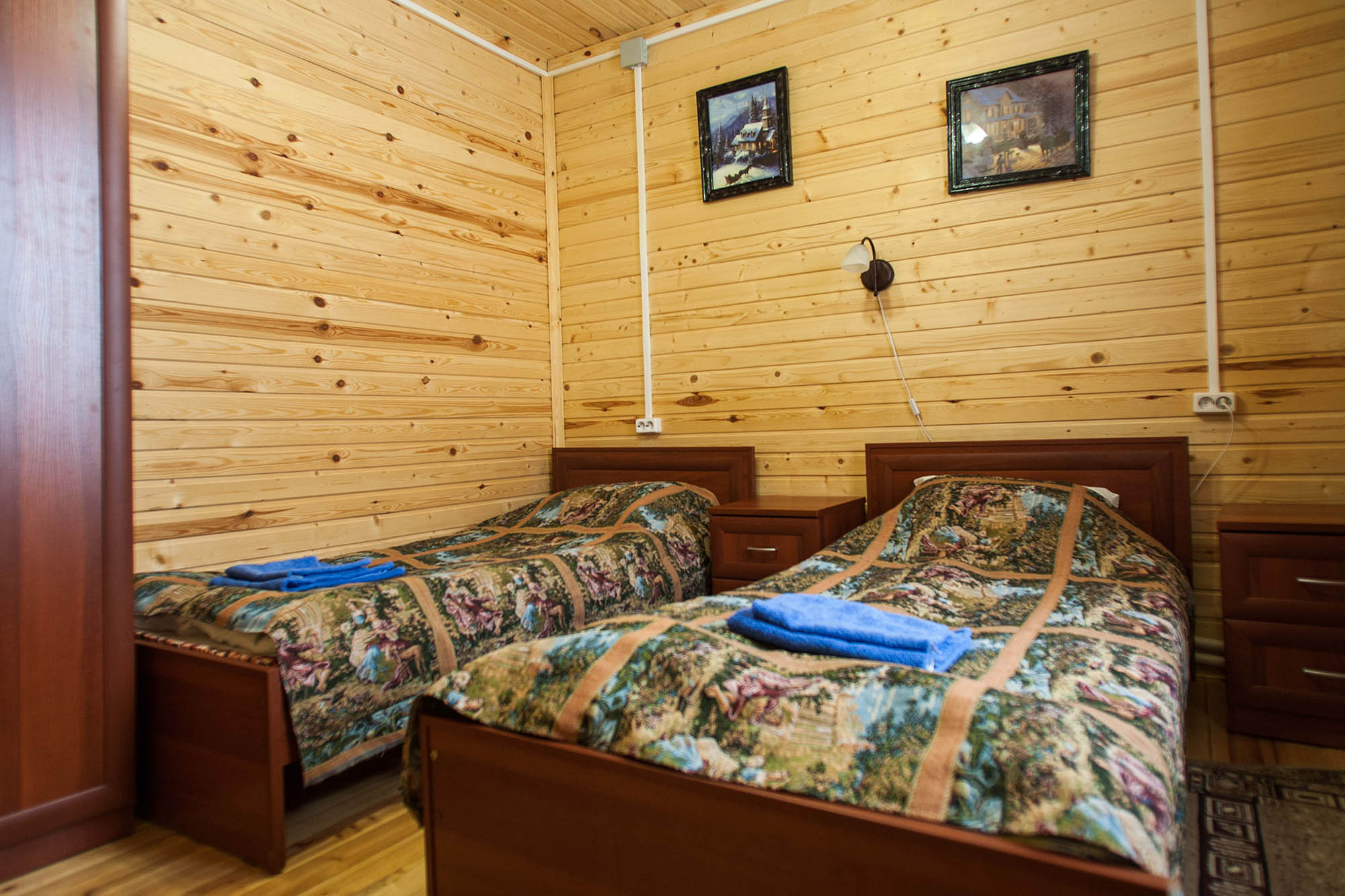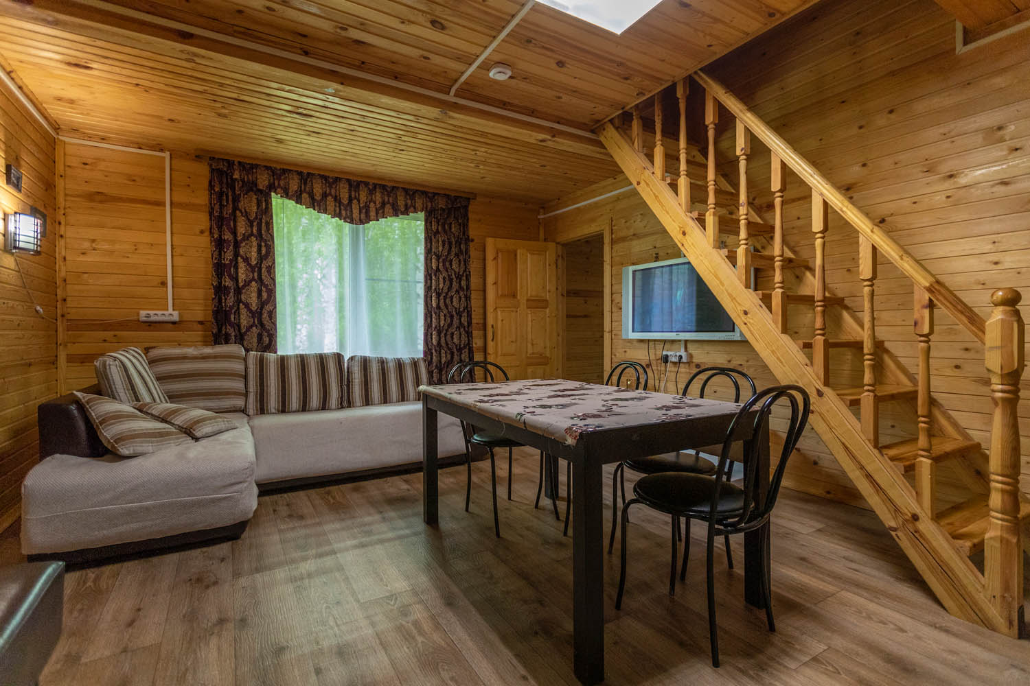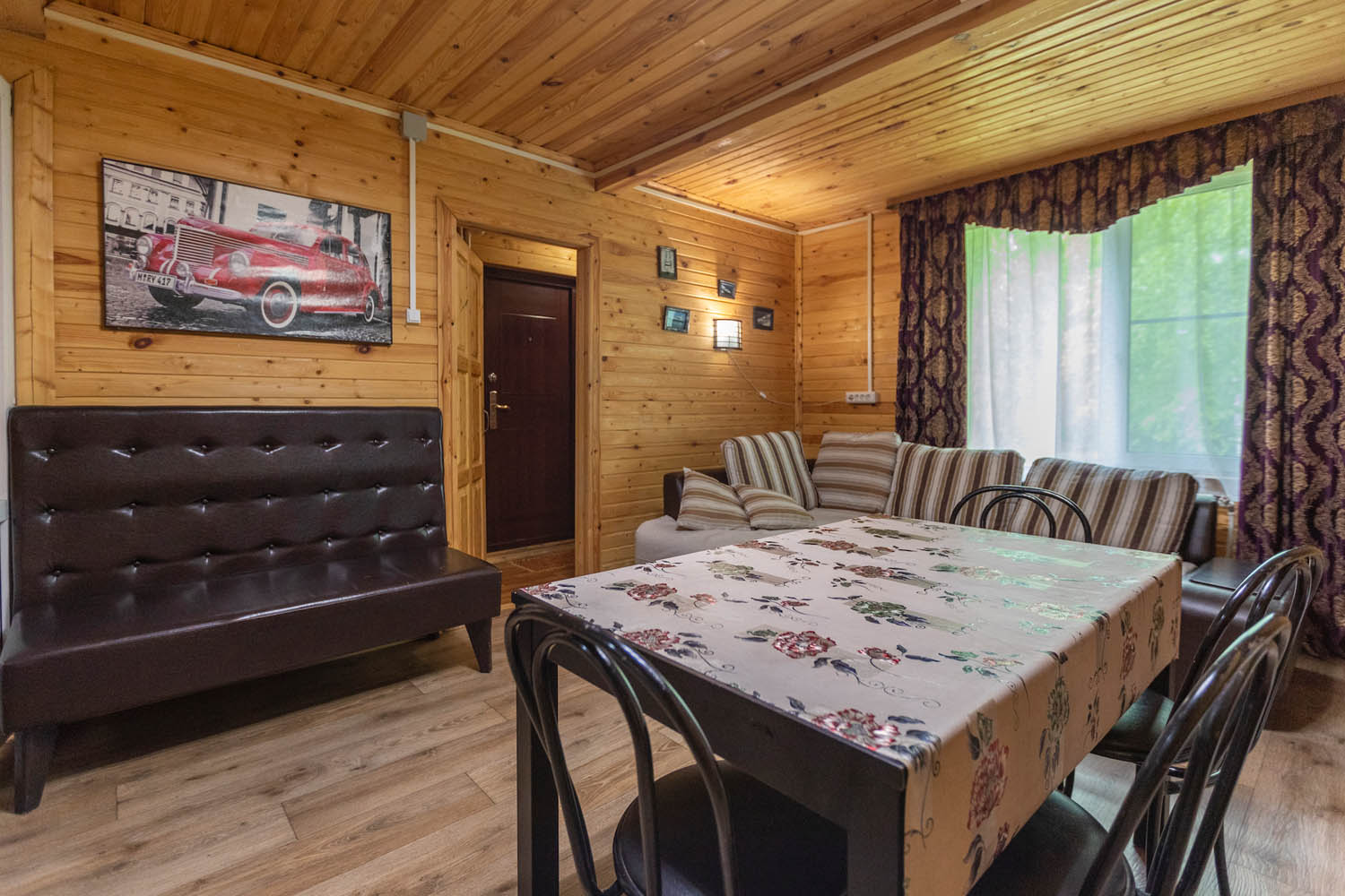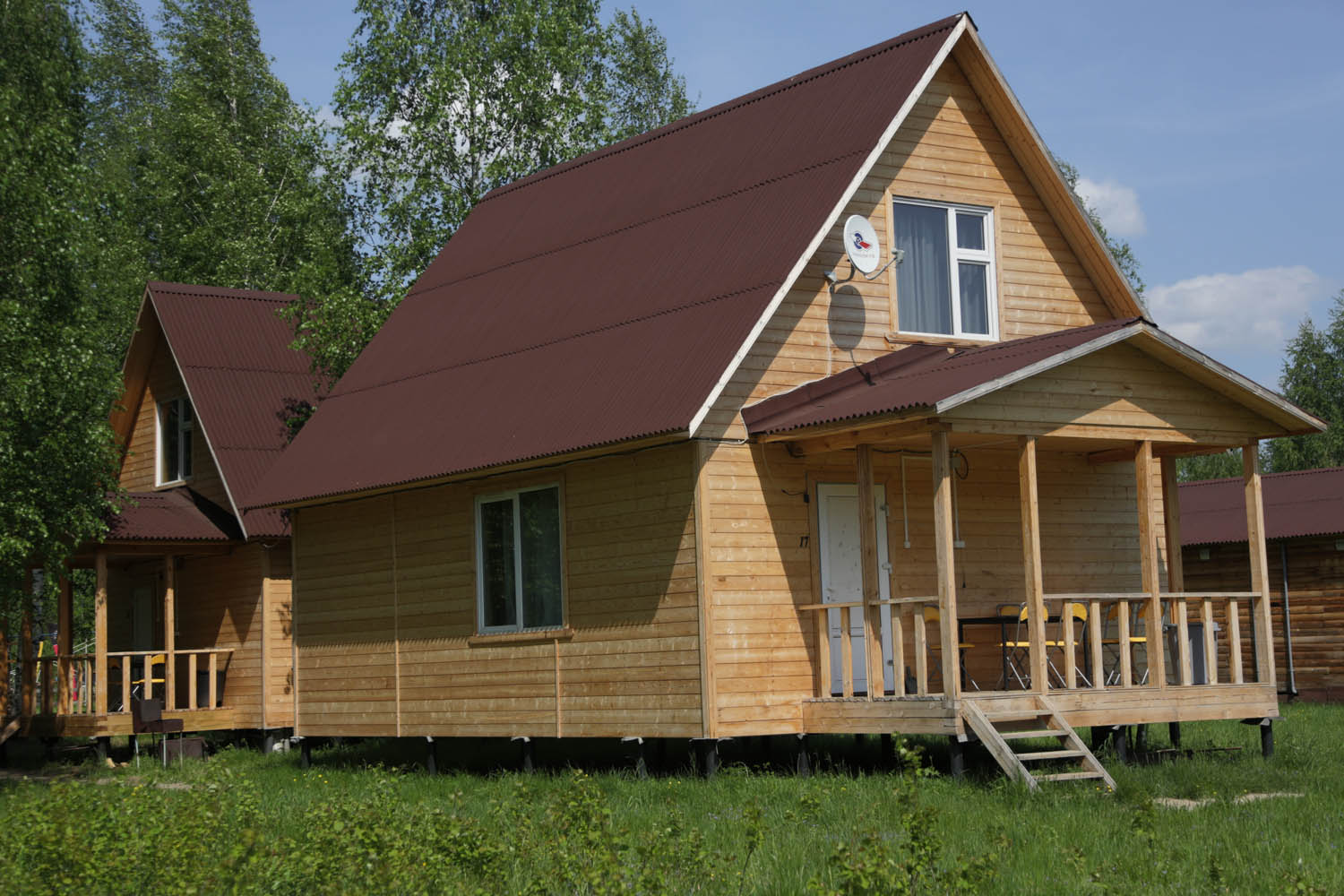 На территории расположены 2 двухэтажных коттеджа площадью по 100 м². Комфортное размещение для 8 человек, максимальное – для 10. Есть возможность для двух дополнительных мест (за отдельную плату).