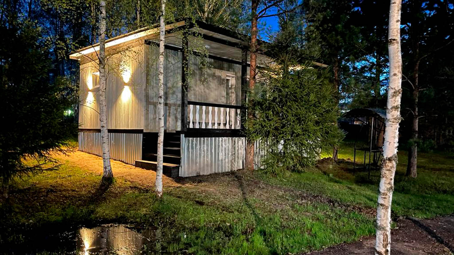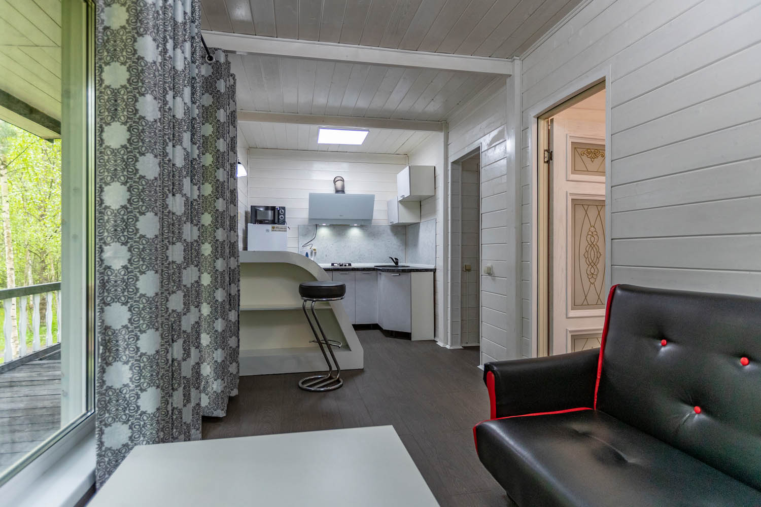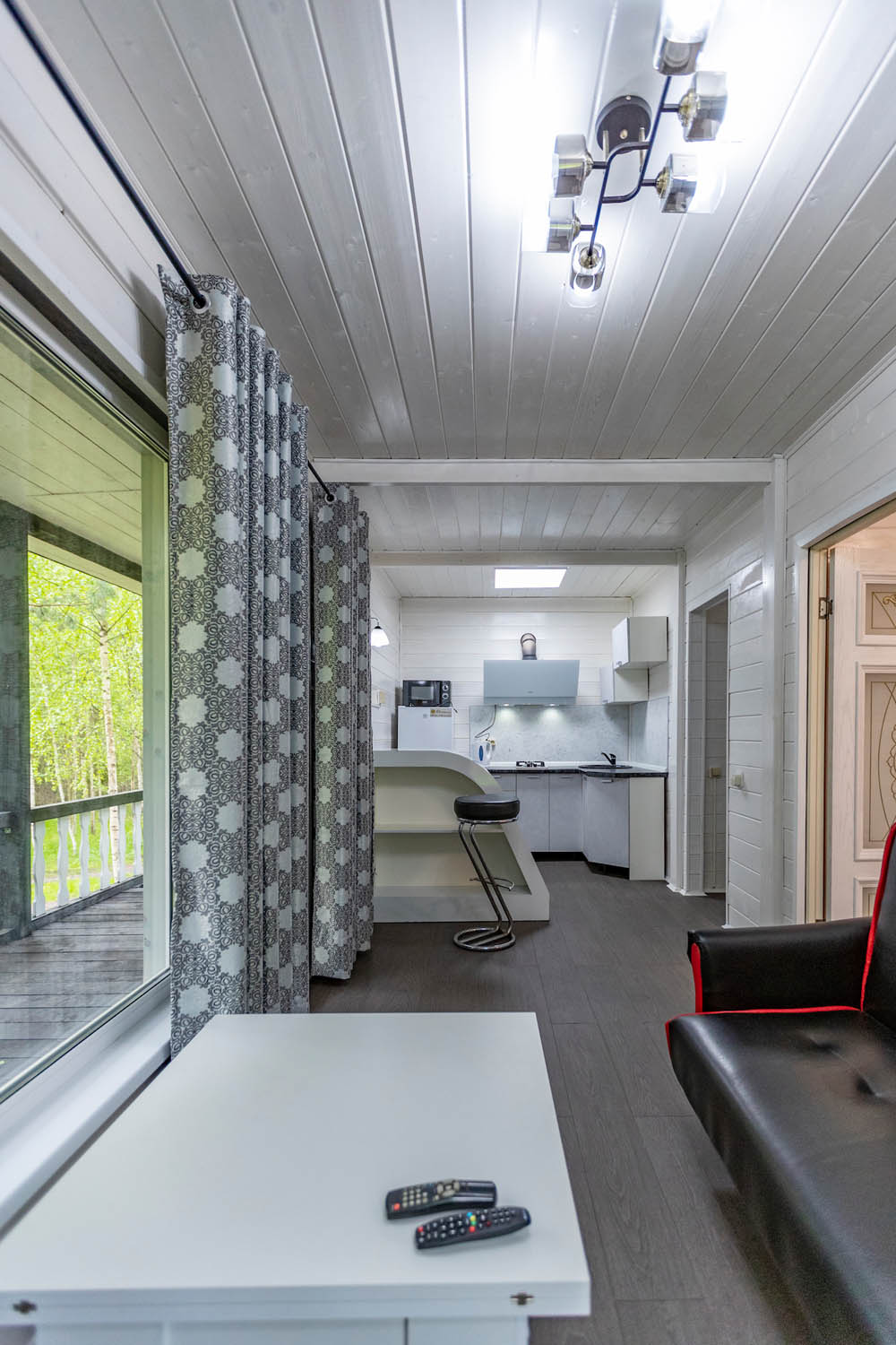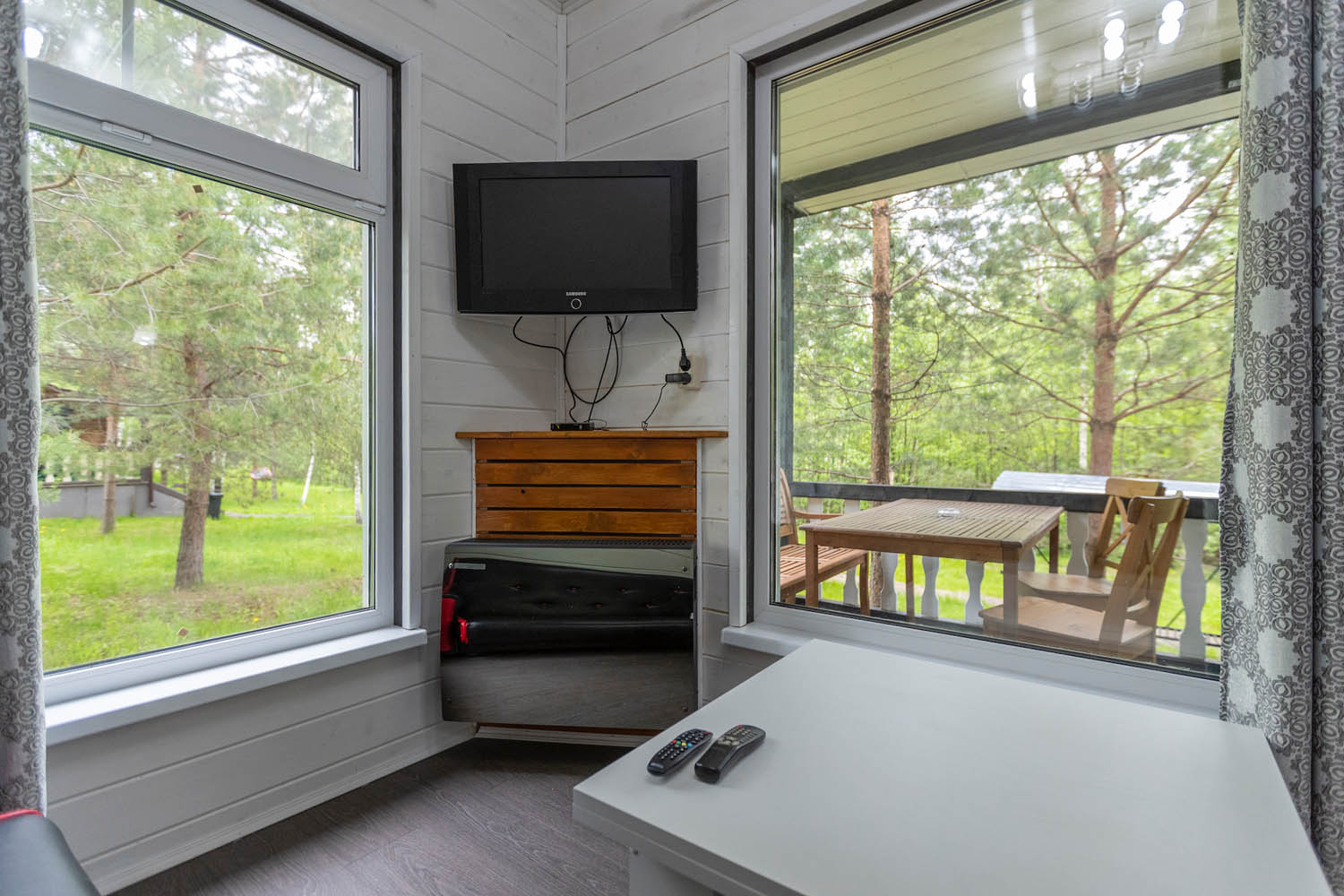 Коттедж ВИП площадью 50 м² с большими панорамными окнами и огромной террасой. Комфортное размещение для 2-3 человек.