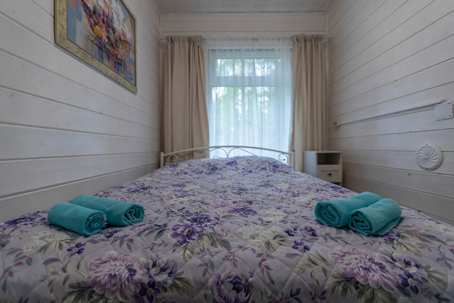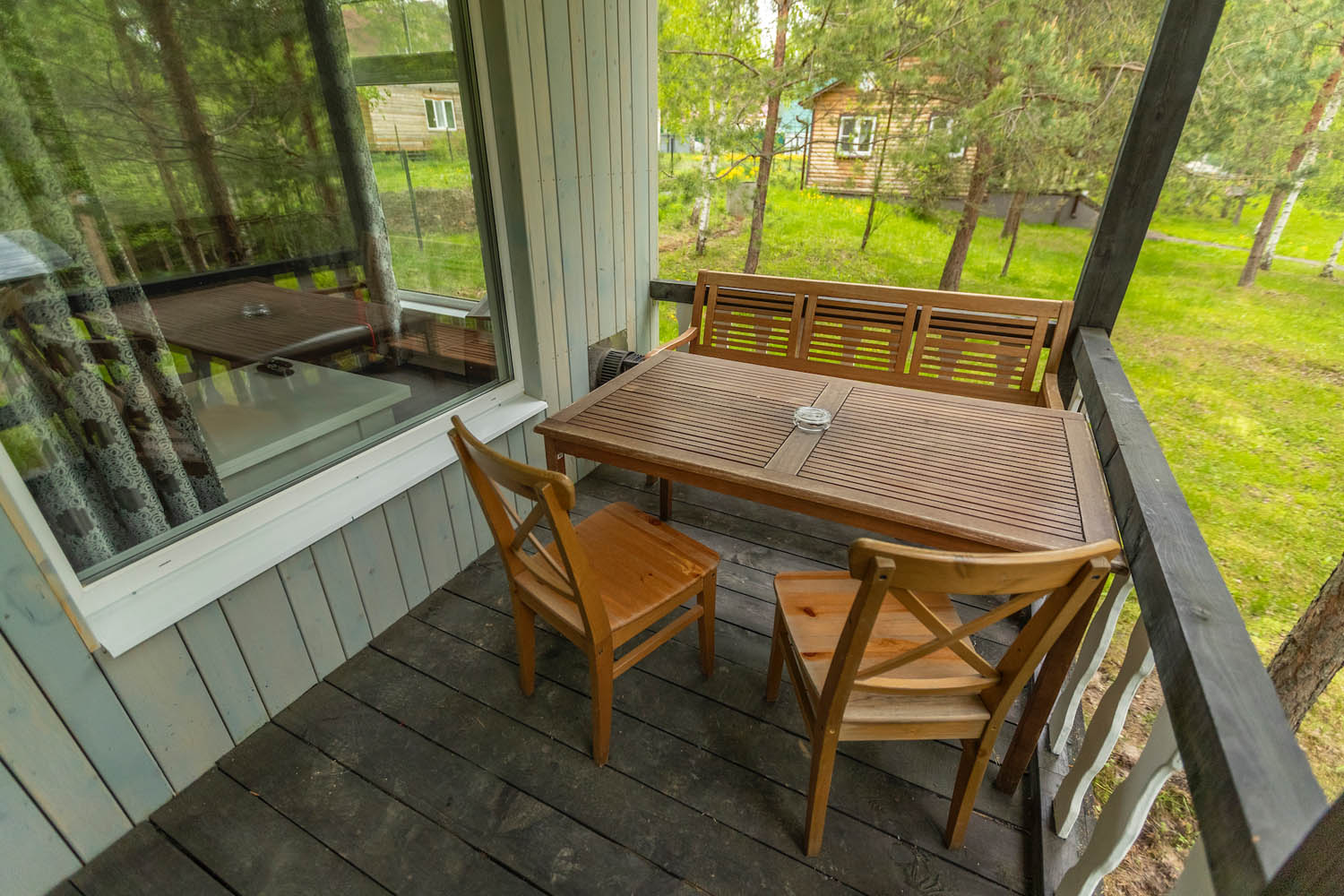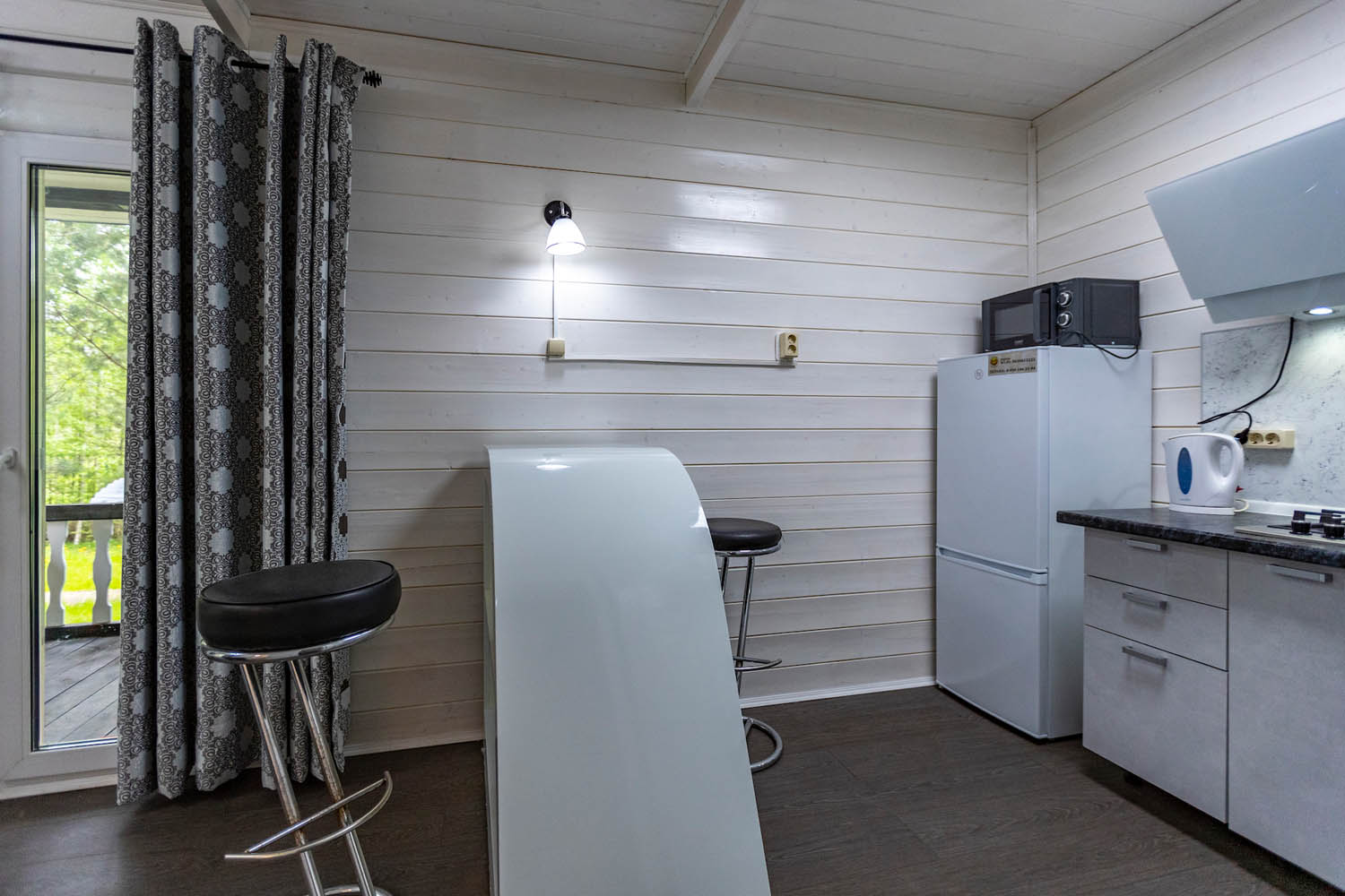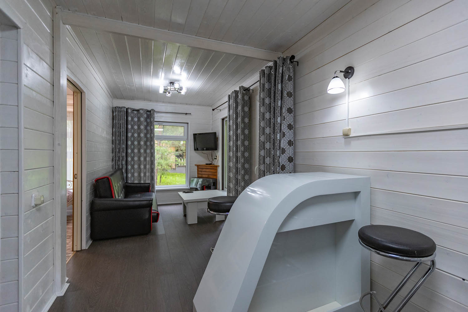 Коттедж ВИП площадью 50 м² с большими панорамными окнами и огромной террасой. Комфортное размещение для 2-3 человек.