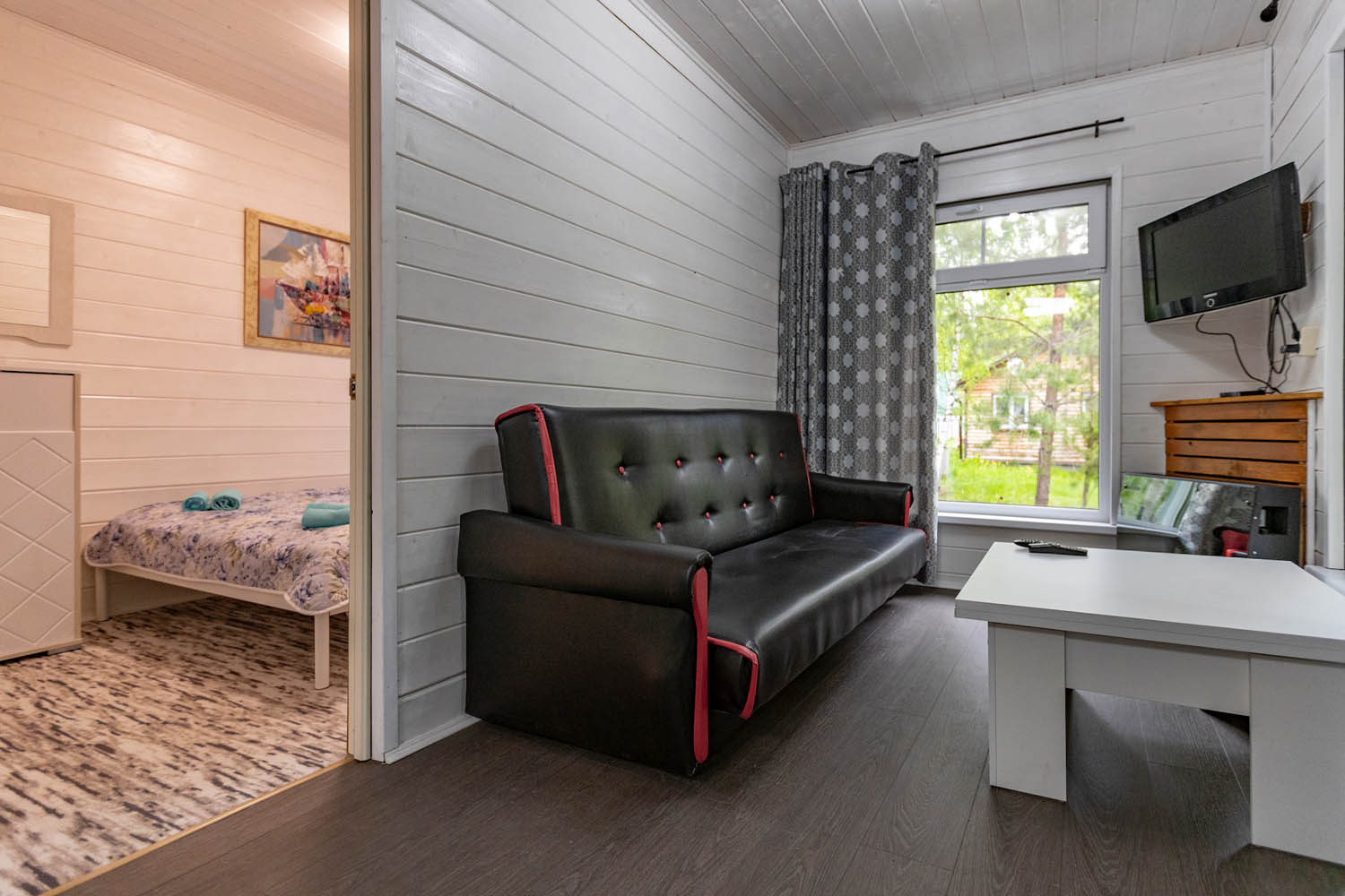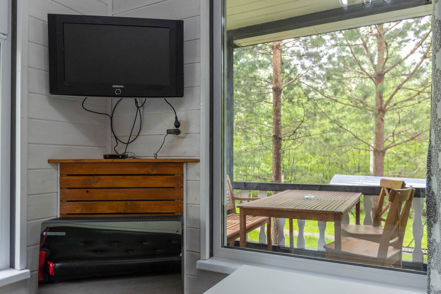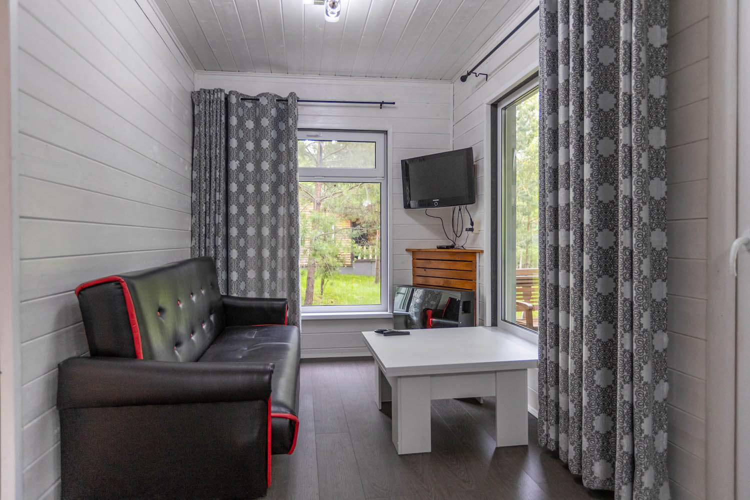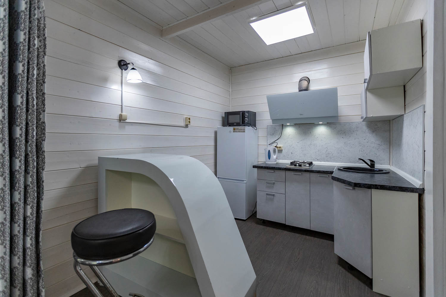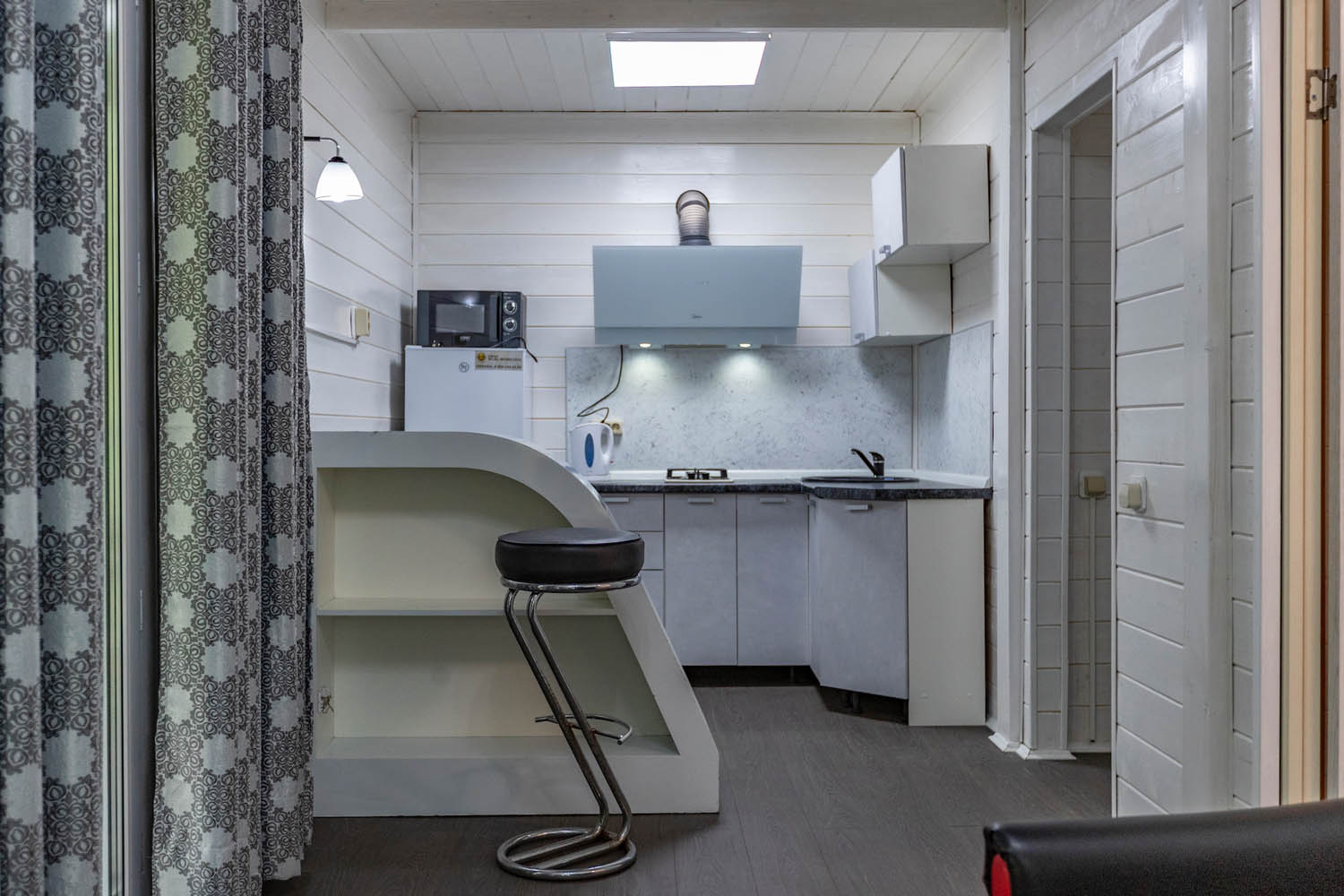 Коттедж ВИП площадью 50 м² с большими панорамными окнами и огромной террасой. Комфортное размещение для 2-3 человек.