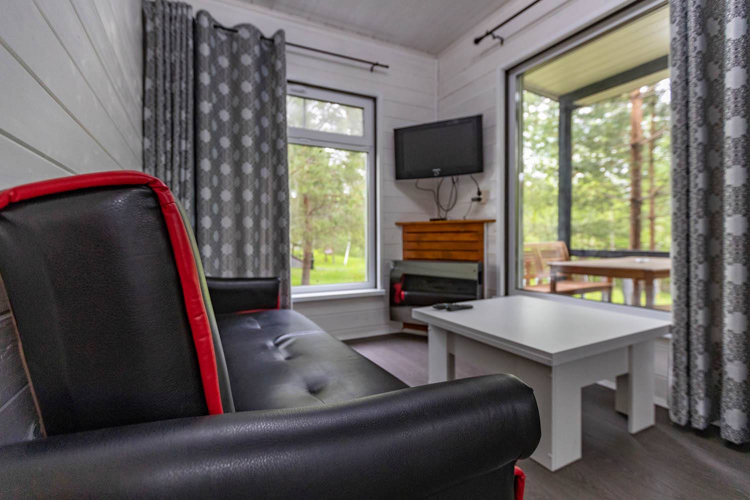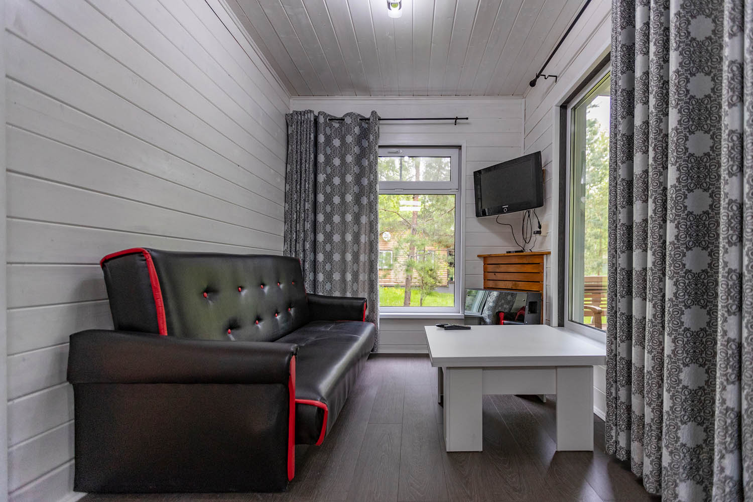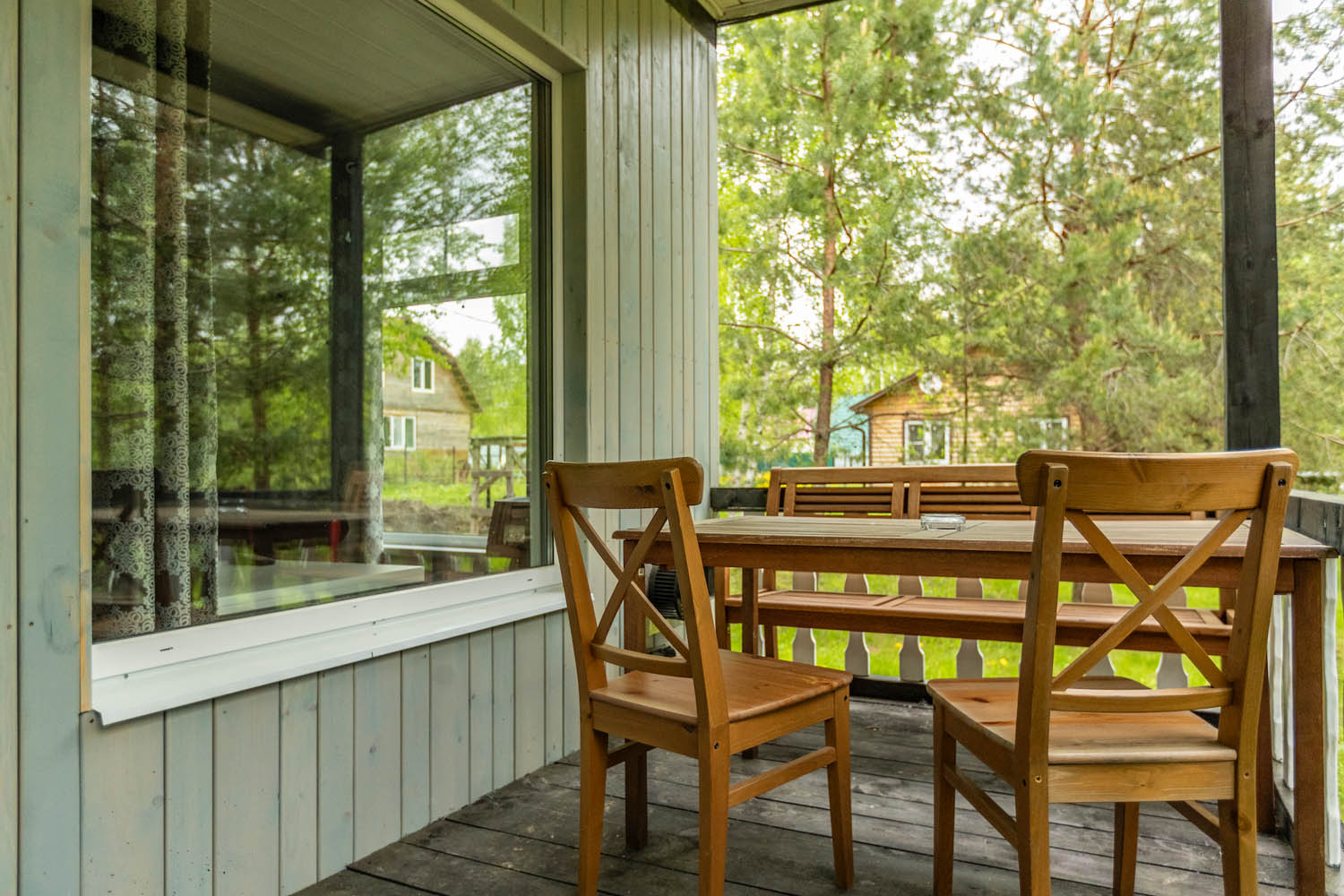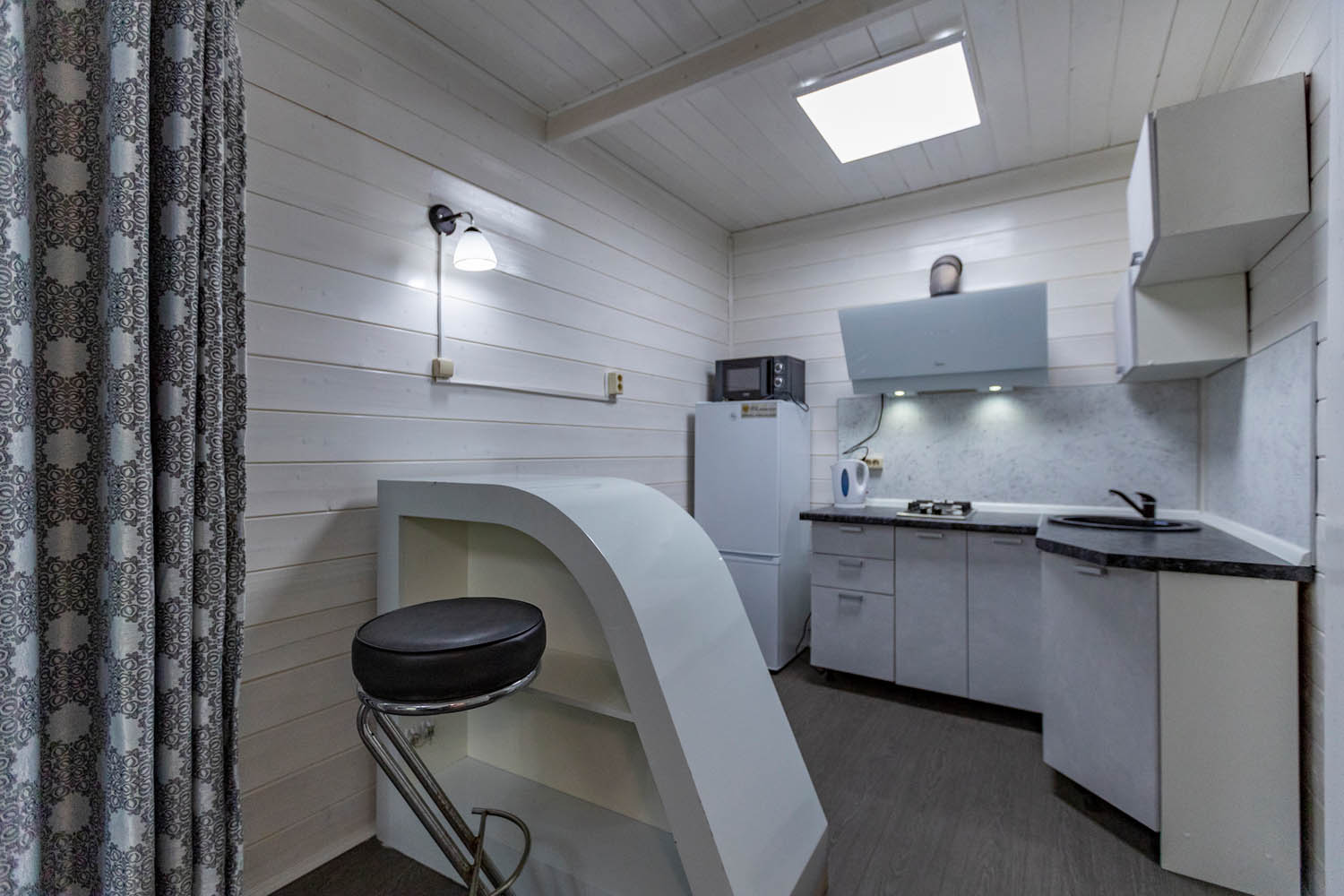 Коттедж ВИП площадью 50 м² с большими панорамными окнами и огромной террасой. Комфортное размещение для 2-3 человек.