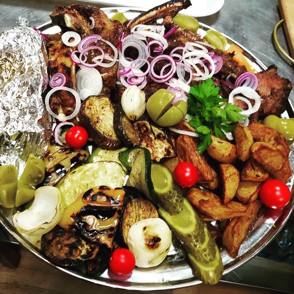 Микс барбекю (Бифштексы и купаты из дикого мяса, Люля-кебаб из курицы, форель на гриле)